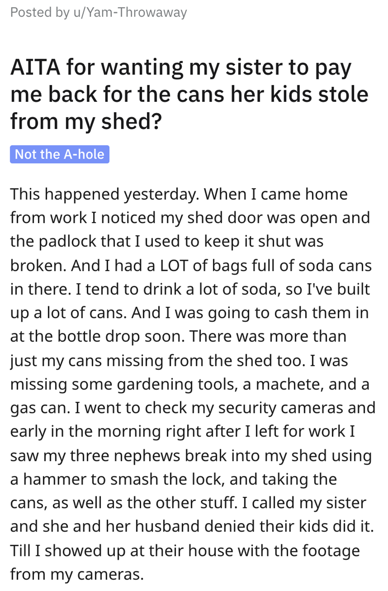 Thieving delinquent nephews steal coveted can collection, guy threatens to call police when they won't pay him back