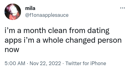 We've been single for a very long time, so we've become very seasoned when it comes to the dating apps. Whether it be Tinder, Hinge, OkCupid, Bumble, or Raya, we know what type of people to expect on every single app. We've spent so much time on the apps that our experiences have become pretty predictable, but not predictable enough to stop us from coming back for more. At this point, we're on the apps for entertainment rather than finding long-lasting love. We've become too jaded for all the rainbows and butterflies we dreamt about back when we were teens. Sure, people have definitely managed to find true love via dating apps, but those are the people that just walk in the light. Unfortunately, we don't happen to be part of the people that walk in the light, so would continue to experience dating apps in darkness. Scroll down for the best dating app tweets of the week.
