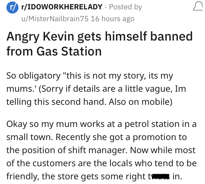 The OP tells this story of his mom's experience as a gas station manager in a small town