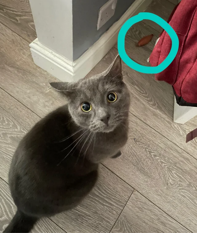 "Thought I’d gone mad 3 weeks ago when I couldn’t find this shallot while making dinner. This morning I hear a noise… he’s stolen it as a toy!"