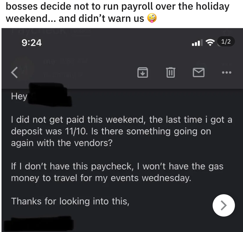 'I did not get paid this weekend': Bosses chose to delay running payroll without notice over a Holiday weekend