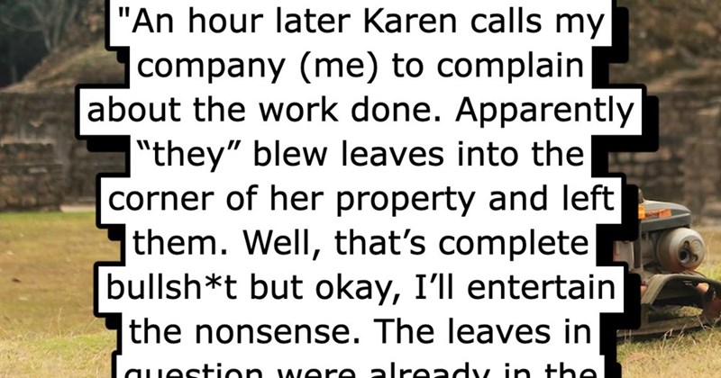 'The leaves in question were already in the back corner': Lawn maintenance guy gets locked in left leaf battle with local Karen when she makes baseless complaints about alleged leaf leaving