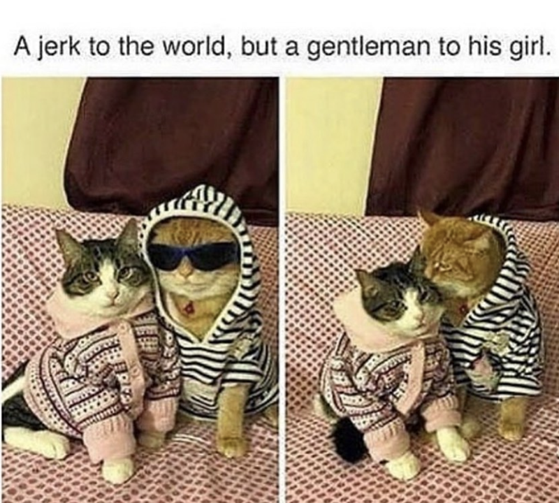 Just another dad that claimed he did not, under any circumstances, did not want a pet… let alone a cat and got stuck with one anyway. Fast forward a few years, and the two are completely bonded and obsessed with each other. Classic.