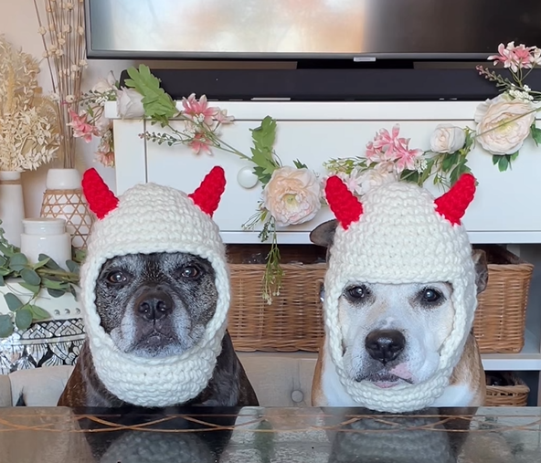 Santa’s Cutest Canine Approved Workshop: Ivy and Sookie Rocking Fancy Crocheted Hats