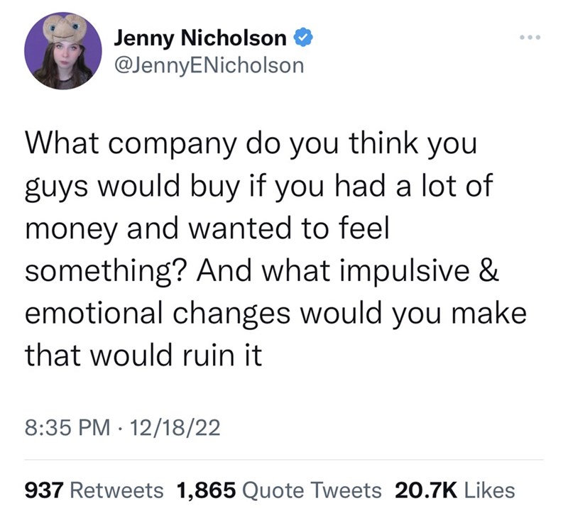 People Fantasize About the Companies They'd Buy and Ruin Like Elon Musk Did To Twitter