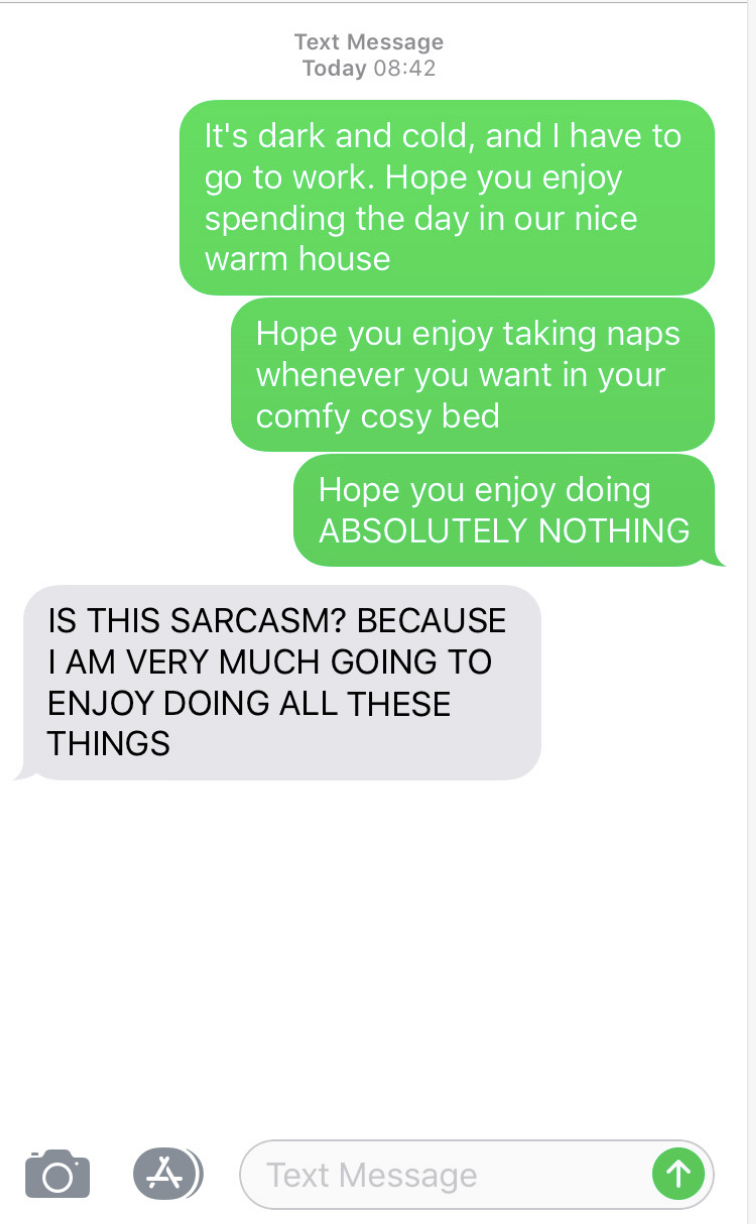 Oh Dog, you're so sassy. But it's part of the reason why we love you - because we know you honestly do love all of those things. You may never really learn what sarcasm is, but it's okay. You're cute and you still love us…sometimes.