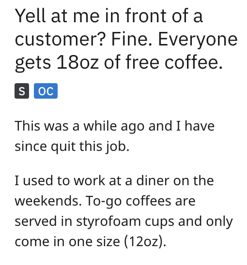 ‘She threw me under the bus’: Diner worker gets shamed by manager for coffee order in front of customer, cue coffee-fueled malicious compliance