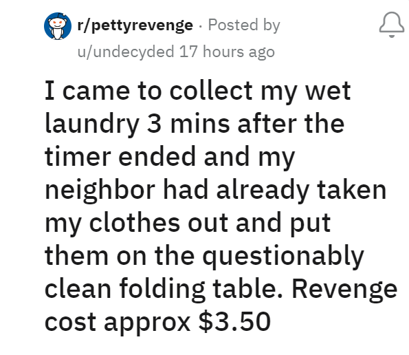 ‘Revenge Cost Approximately $3.50’ : Lady Gets Sneaky Payback on Entitled Neighbor Who Removes Her Laundry From Shared Washing Machine in Order to Use It Herself