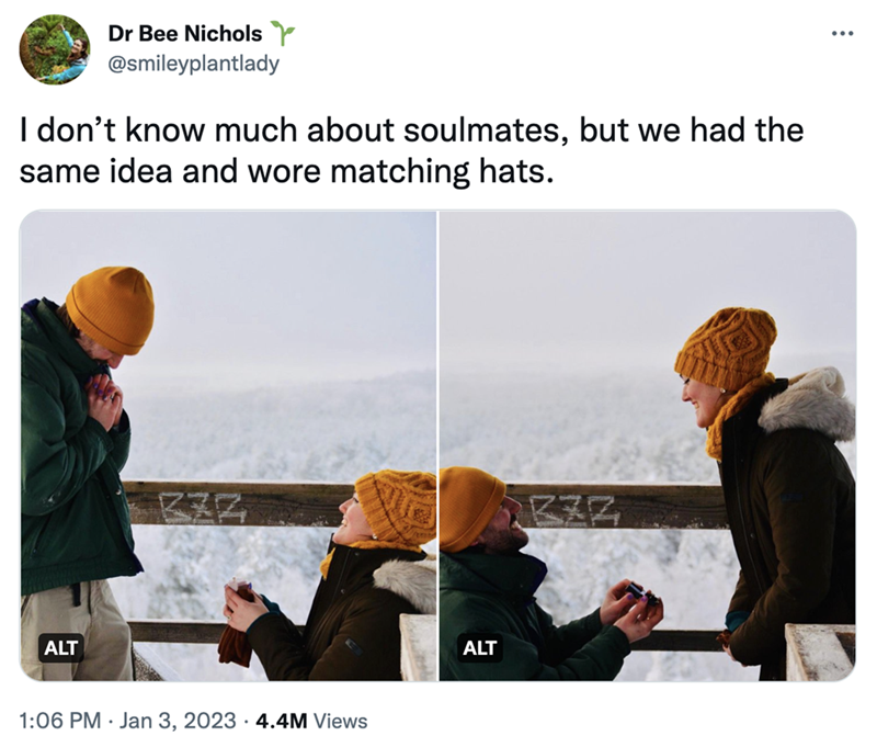 If we didn't know better ourselves, we'd think this entire story was staged. Everything from the matching hats to the nails, to the double proposals - ouf, so perfect and romantical we just can't help but feel warmth in our hearts :')