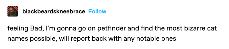 Person Feeling Blue Looks Up the Most Bizarre Names of Cats for Adoption on Petfinder to Feel Better (Tumblr Thread)