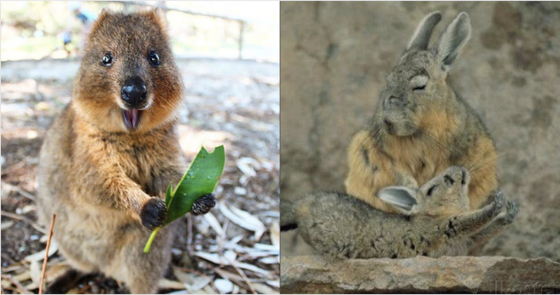 We've truly never seen two animals with such opposite facial expressions. We've never seen a picture of a quokka that's not obnoxiously happy, and the same goes (but opposite) for the same goes for the viscachas. Positivity vs, negativity, who will win?