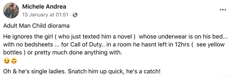 "whose underwear is on his bed... with no bedsheets... for Call of Duty.. in a room he hasnt left in 12hrs (see yellow bottles)"