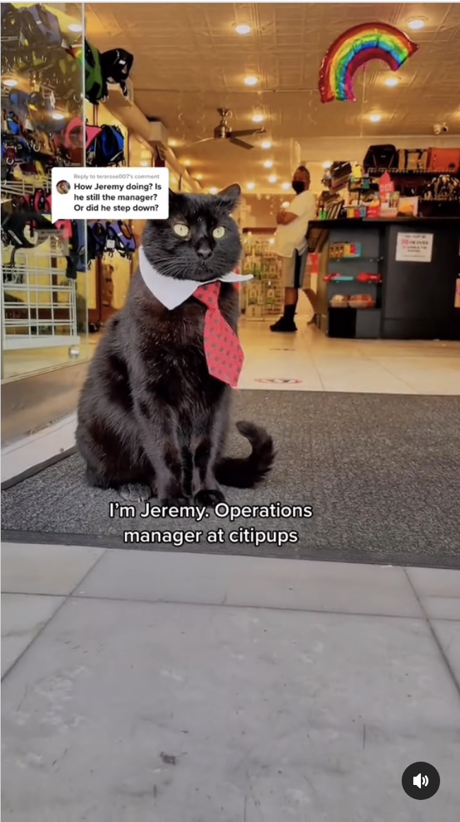 You might be thinking, "Why is a cat the manager of a puppy store?". The answer is simple - imagine a dog running a puppy store, nothing would ever get done! Everyone would be playing all the time and messy. Not good business practices!