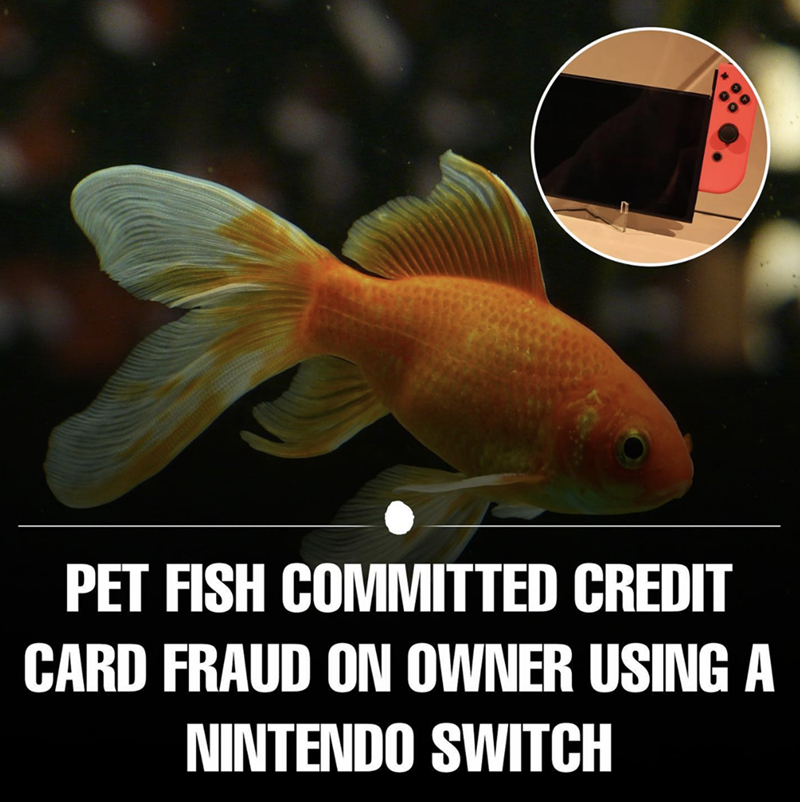 Just imagine the conversation: "Um, hi, Nintendo customer service? Yeah, I need a refund. My fish accidentally used my credit card to buy something on the online store. Yes, that's right, my fish. I know it sounds crazy, but it really happened, I have a recording of it. No, this is not a prank call."