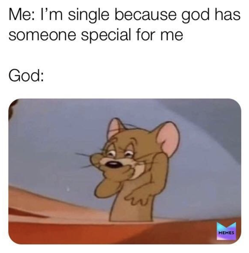 Cartoon - Me: I'm single because god has someone special for me God: MEMES