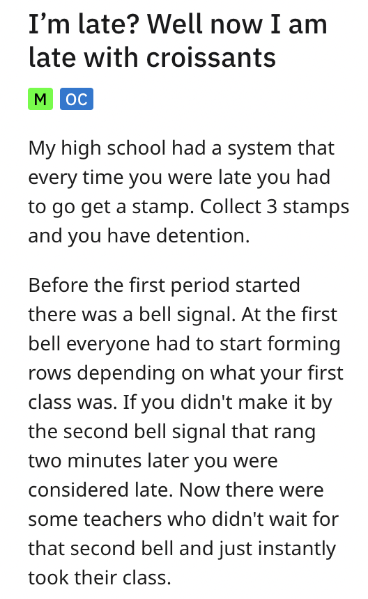 'If I'm going to be late, I might as well be more late, but with food': Tardy student angers teacher by bringing croissants for the whole class