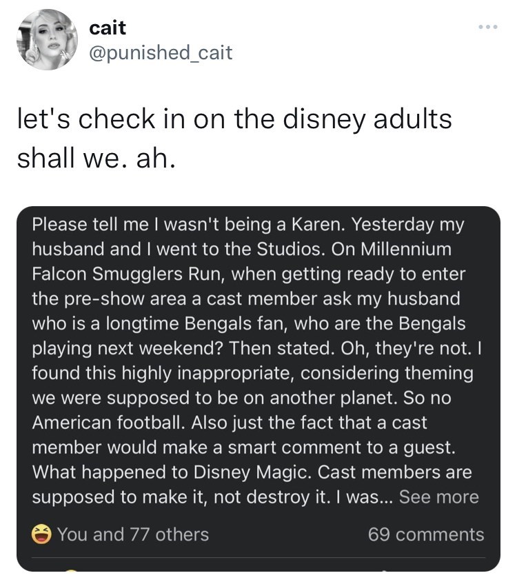 Karen Claims Disney Employee 'Destroyed The Magic' By Making Sports-Related Small Talk