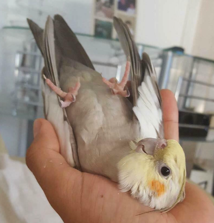 Cockatiels happen to be very smart, to a degree. It looks like this little guy has learned how to play dead, and is busy showing off to everyone, as he should, cuz look at those acting skills. He's also so chuffed with his skills that he cant help but give us an adorable little smile!