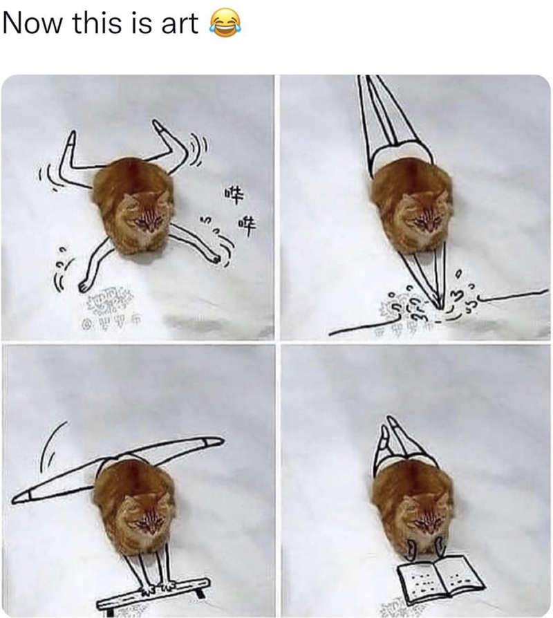 Nothing, and we mean nothing, in this cat's face says that he wants peace with the dog. We haven't seen a cat look that perturbed since we fed ours this morning five minutes later than usual. Poor doggo, better luck next time!