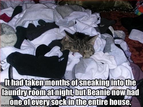 It had taken months of sneaking into the laundry room at night, but Beanie now had one of every sock in the entire house.