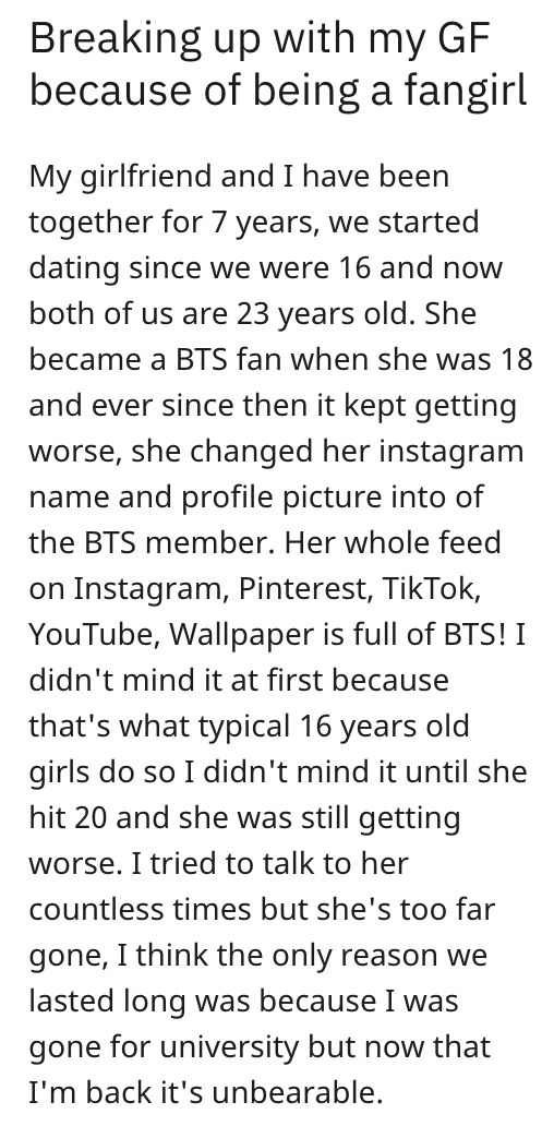 'It kept getting worse': Guy breaks up with girlfriend because she's too obsessed with KPOP boy band