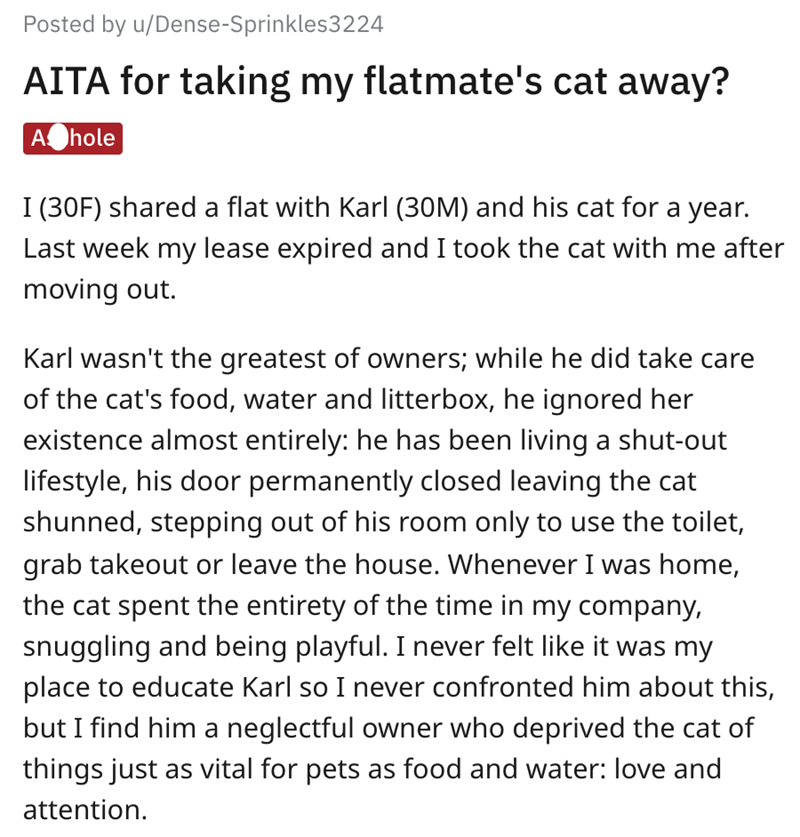 Woman Steals Roommate's Cat, Wonders if He's Wrong