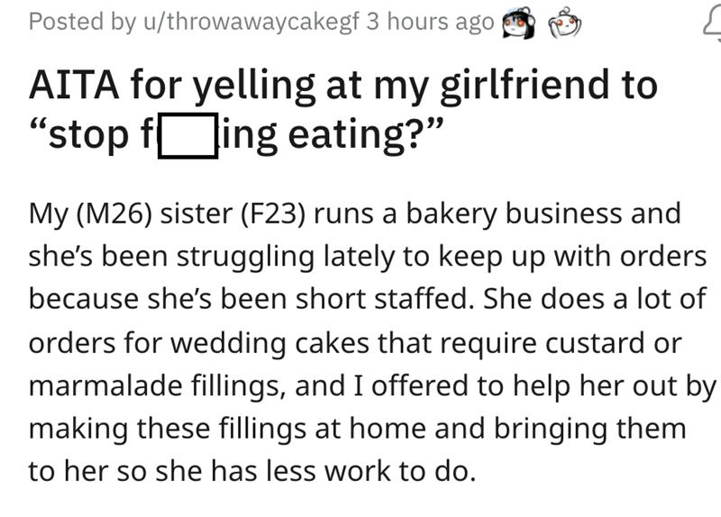 'AITA for yelling at my girlfriend to stop f-ing eating?': Guy's outburst shuts down entitled indulgent girlfriend