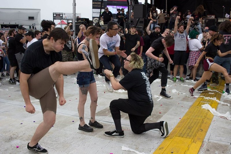 Here is the source of all these <strong>funny pictures</strong> from this fierce photoshop battle of a couple popping the question (getting engaged) right in the middle of a mosh pit. The guy kicking in the foreground really steals the show.