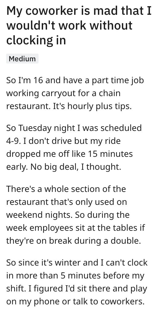 #1: This server was shaded by her coworker after refusing to do work until she was clocked in