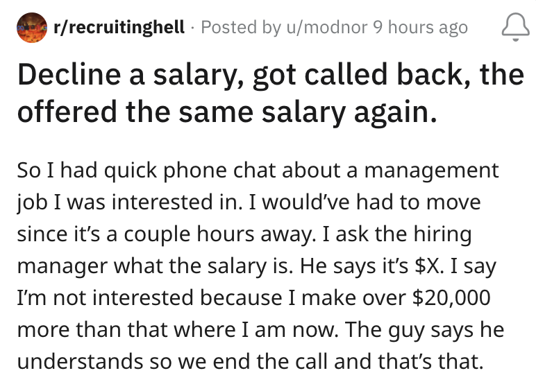 'Offered the same salary again': Job candidate declines role after low-ball salary offer, management comes back with a second offer... for the same amount