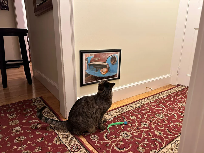 "So apparently in my absence my husband has hung cat-level wall art. So sophisticated!"