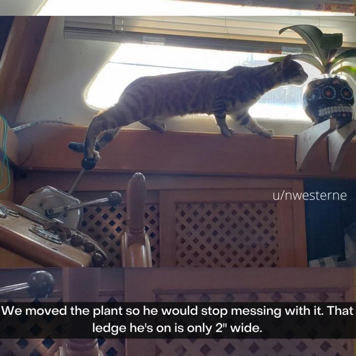 When a cat is mid-battle with a plant, nothing will stop it from finishing said battle. You should have known that. This is unfinished business right here, and so long as the plant lives, the cat will not let go of it. Good luck, fierce cat soldier, we wish you good fortunes.
