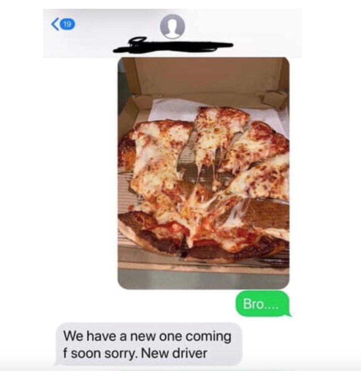Well, you will be happy to know that there are some people out there who aren't complete jerks when it comes to dealing with customer service. Recently, a screenshot of a text thread was shared on Reddit that showed a customer reacting wholesomely to an issue. He had ordered a pizza, and when it got delivered, he opened up the box and the pizza was completely destroyed. He sent a picture to the small local pizza shop with just the words "bro…" The management was quick to apologize and tell them they were going to send him a replacement pizza.