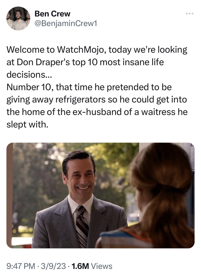 Viral Twitter Thread Recounts Don Draper's Most Insane Life Decisions on 'Mad Men'