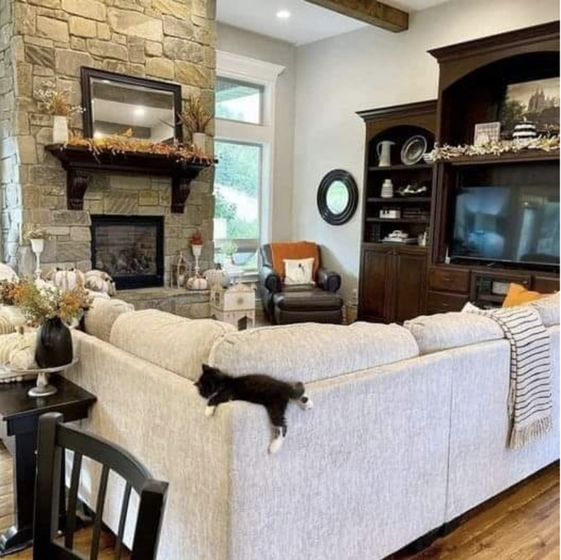 Awwwwww, this is a very rare sploot! It's a tired, corner-of-the-couch kitty sploot! Very rare indeed. She must have been traversing the couch when she ran out of energy (cure, more kisses) and fell into a sploot on the corner.