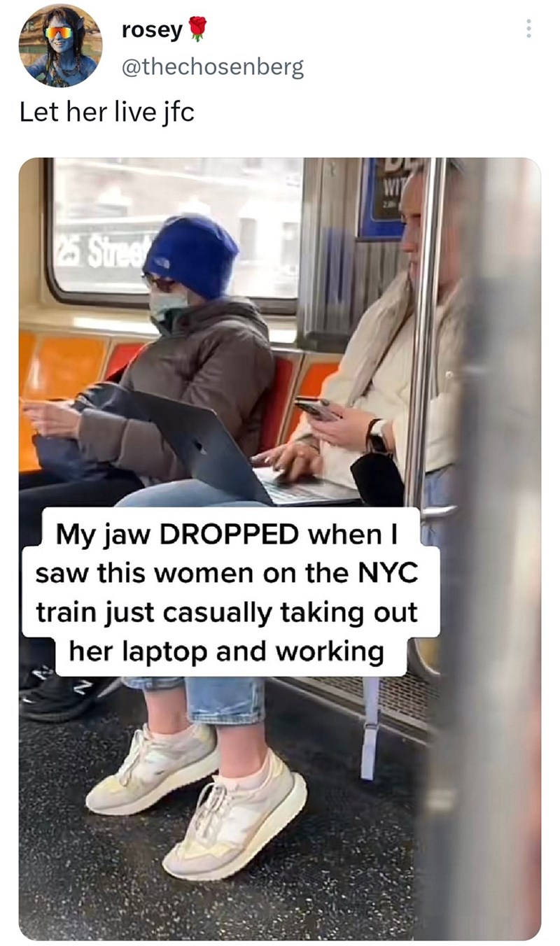 Subway Rider Puzzles Twitter by Freaking Out at Lady Working on Laptop