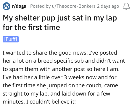 Redditor Honored After Rescue Pup Builds Up Enough Trust With Him To Sit On His Lap