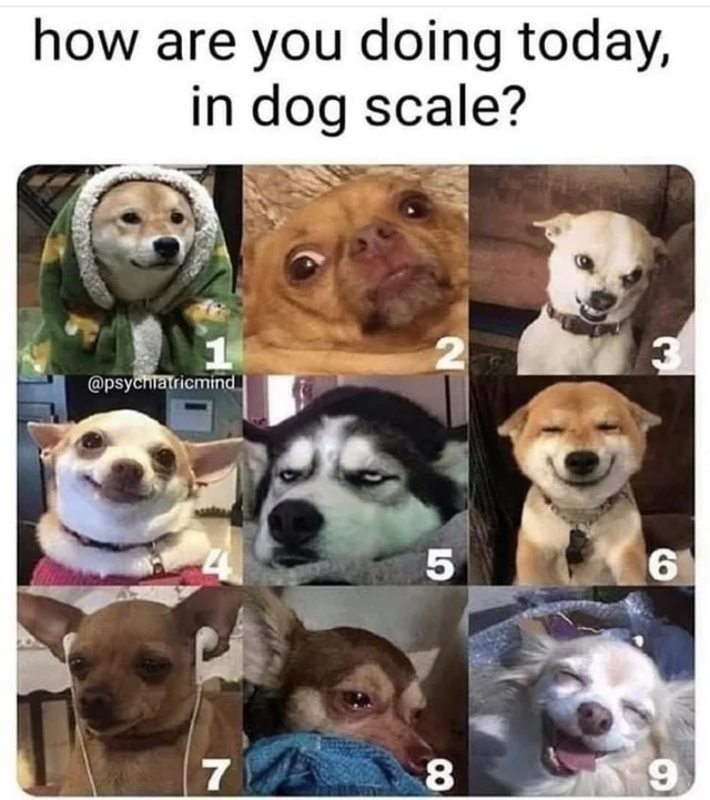 Honestly bringing this to my next therapist appointment and just pointing to one of these dogs. What better way to explain my mood?