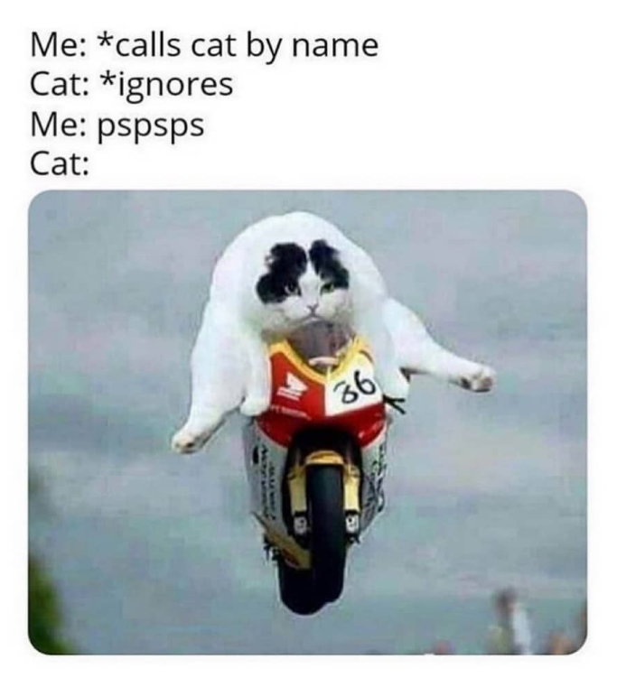 And if your cat is like our cats, then it will ignore the pspsps as well and will only ever react in this way to the very distinct sound of a can being opened. Doesn't matter what can. It could be a can of corn, and our cat will still come running at us at full speed and yell at us until we cave and give it some snack to make up for the pain of not giving them wet food when they most expected it.