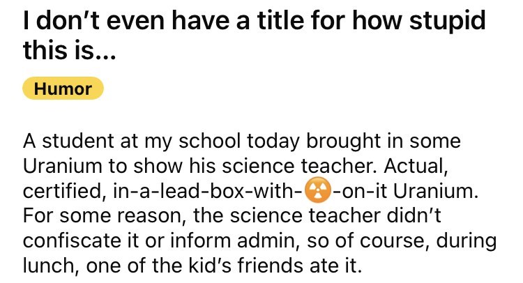 High School Student Eats Uranium During Lunch, Leaving Teacher Dumbfounded
