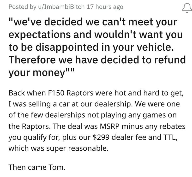 'We've decided we can't meet your expectations': Dealership deals with an entitled customer