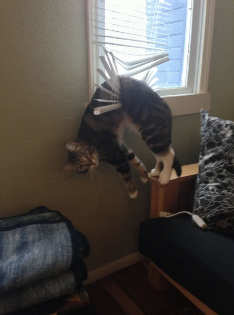 We know that cats are liquid, but how did they manage to get themselves stuck in such a tiny jar? It looks so weird, like a big gray fluffball with eyes! It's kind of freaky actually, we hope they got them out of there quick!