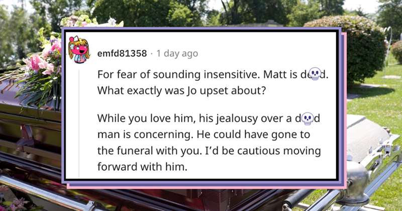 'I just can’t help but feel so guilty': Girlfriend declines going to her ex's funeral because of her current boyfriend's insecurities, developing regret instead of trust
