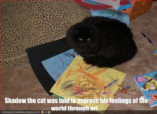 Shadow the cat was told to express his feelings of the world through art...
