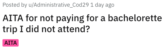 'I didn't go on the trip, so I'm not going to pay': Estranged sister bails on the bachelorette party after being mistreated by the bride, afterwards she gets heckled for cash by the MOH