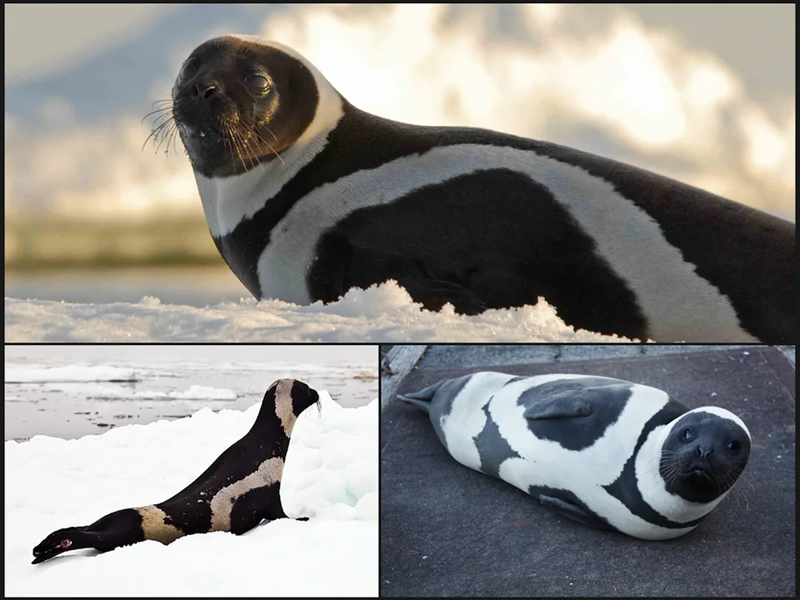 "The ribbon seal is one of the most distinct seals in the world; easily recognizable by four rings or "ribbons" of light fur that stand out against its dark fur. This seal also uses its flippers to shuffle across the ice in an unusual way and has a unique air-sac organ that other seals don't."