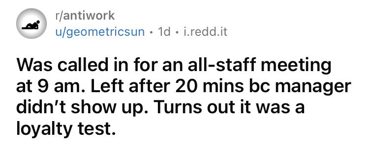 Horrible Manager Calls All Staff Meeting, Doesn't Show Up, Claims it Was a Test of Loyalty