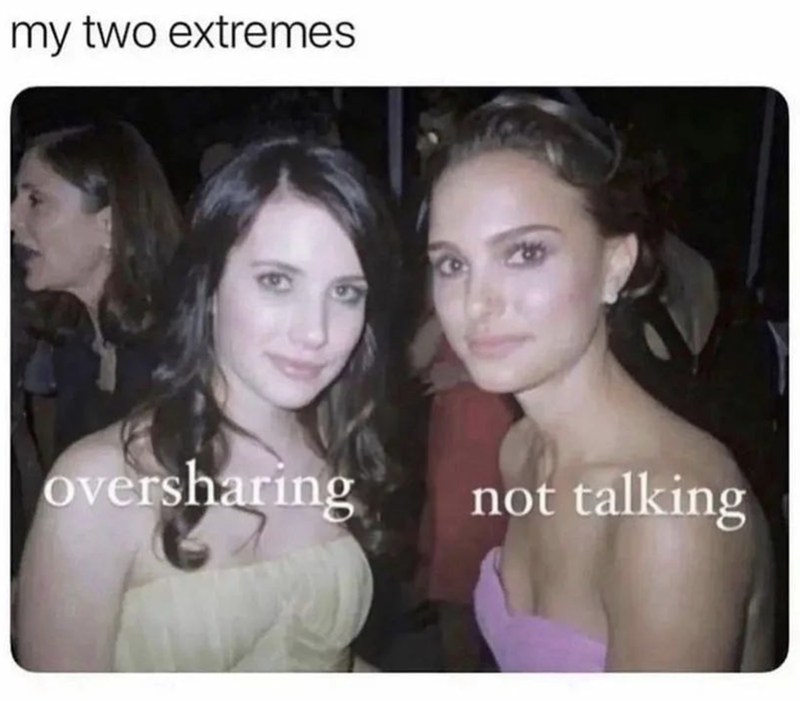 It's either we say too much or we're too shy to speak… absolutely no in between