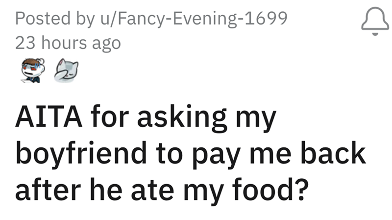 To be fair, we absolutely hate it when our boyfriends eat our food. And don't even get us started on sharing food with them - it's nearly impossible because they eat so fast. But girl… asking him to pay back for three pizza slices?….