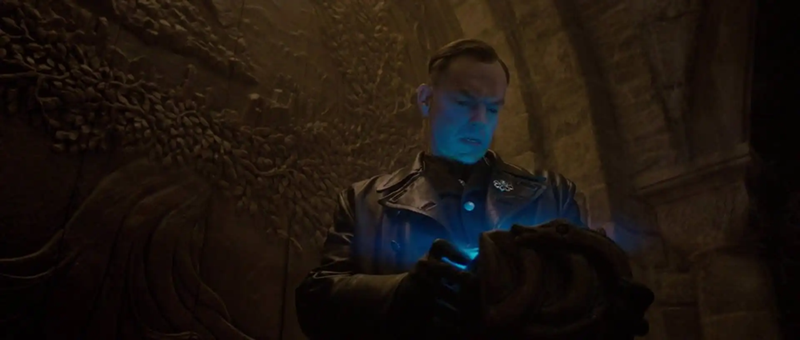 The first time we see Arnim Zola, His face is seen through a circular looking-glass. This is a nod to the comics where he downloaded his consciousness into a robot, with his face visible through a circular screen.
